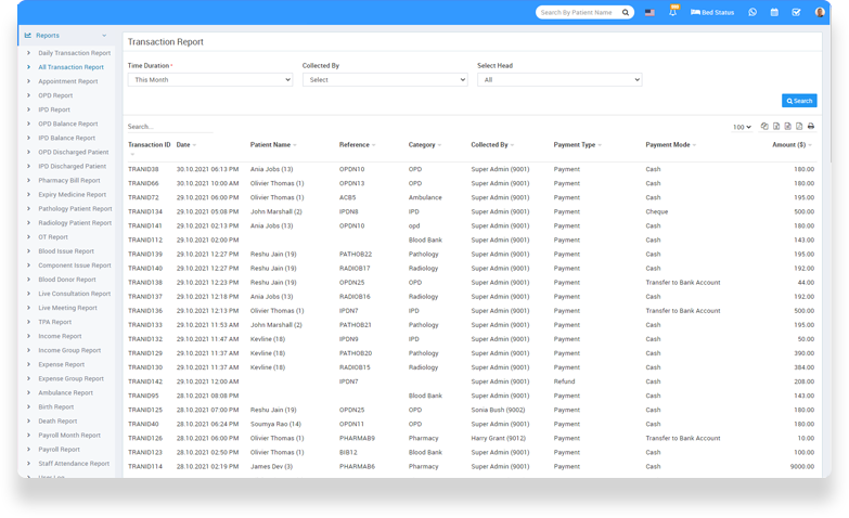 Detailed Business Intelligence Reports for 360* View of the Hospital
